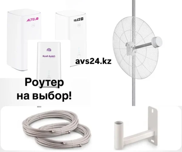 Готовый 4G/5G Wi-Fi комплект на базе роутера Huawei CPE H155-380 с внешней антенной KROKS KNA21-1. Подходит для Tele2, Altel и Kcell. Обеспечивает стабильный интернет для дома, дачи и офиса даже при слабом сигнале.